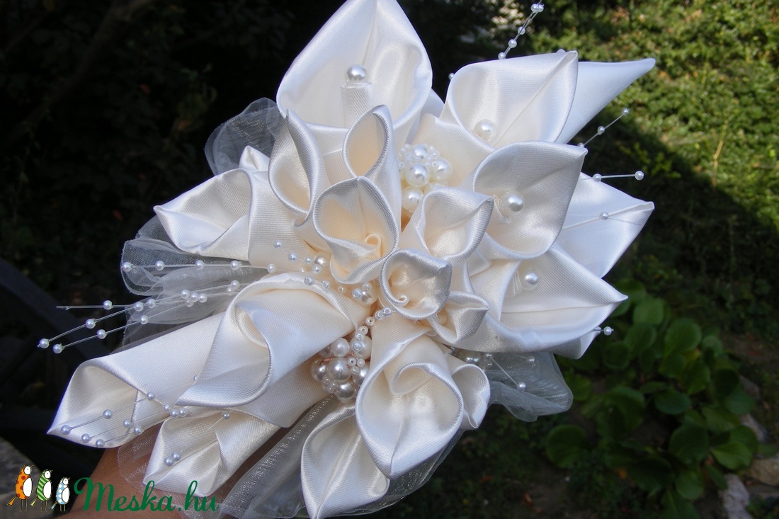 Szaténból készült kálacsokor.